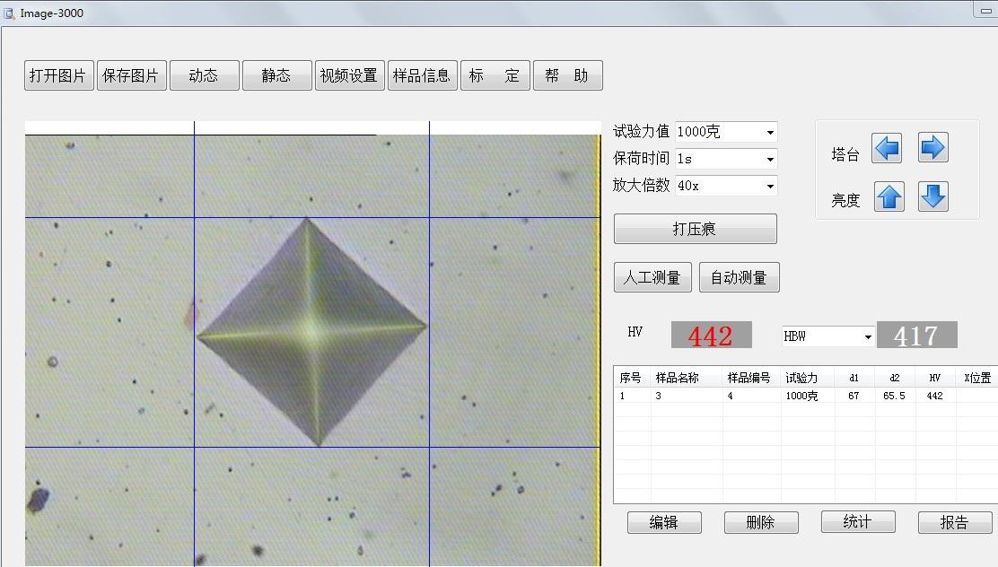 為找到正確成像位置 應(yīng)注意要調(diào)節(jié)使壓痕邊緣清晰 而不是壓痕對角線或?qū)蔷€交點清晰。我們需要測量的是這個四棱角錐體坑表面棱形的對角線長度。為幫助操作者掌握這一步驟,這里提出“視差判別法“ ,當(dāng)用分劃板刻線或十字交點對準(zhǔn)壓痕對角線頂尖時,人眼相對于目鏡左右移動,這時如調(diào)焦不正確,即壓痕邊緣象不完全落在分劃板上,則會發(fā)現(xiàn)此邊緣相對于分劃線會左右移動。這說明調(diào)焦不正確,如人眼相對目鏡的位置不一致,則一定存在測量誤差,此時應(yīng)進一步調(diào)焦,直至此邊緣相對分劃線在人眼晃動時無相對位置才為正確。